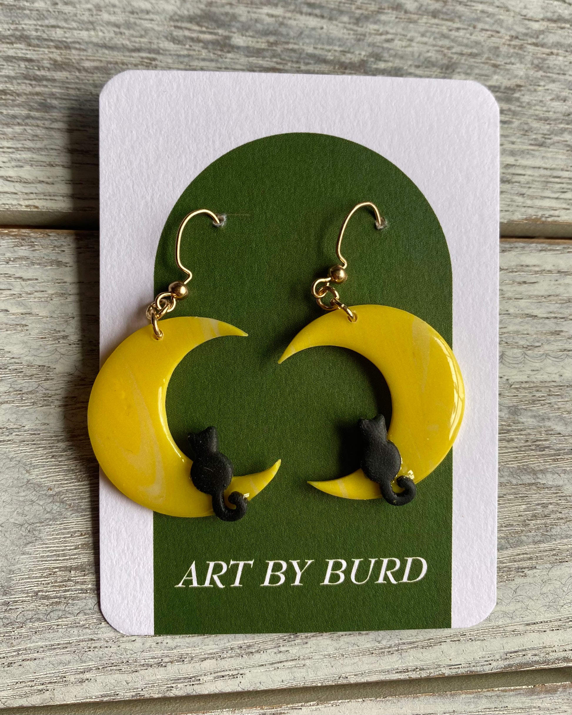 Earrings handmade with polymer clay, UV resin, and nickel-free hardware.