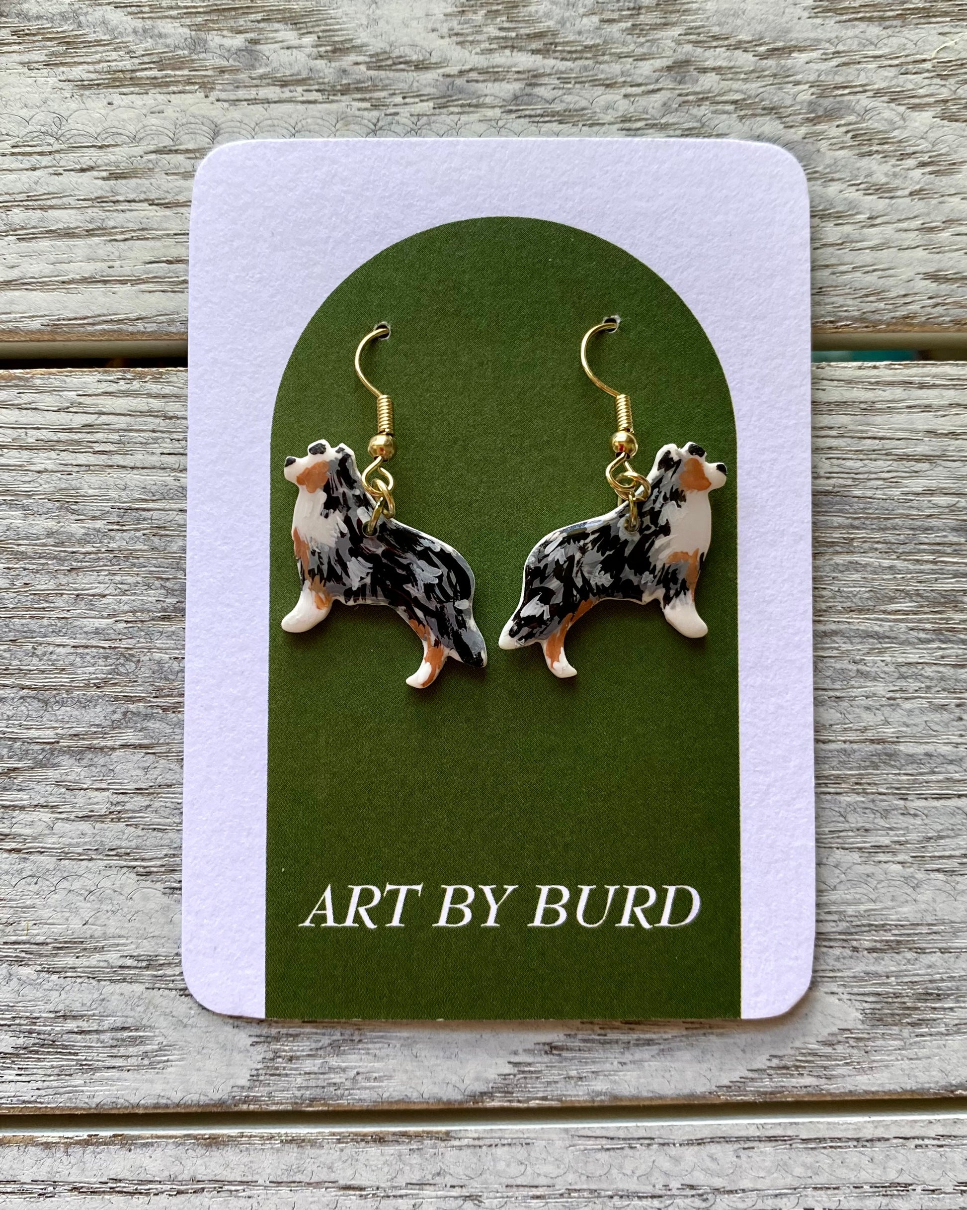 Simply select the “Custom” option and send a picture of the dog you’d like your pair to be modeled after to info@artbyburd.com