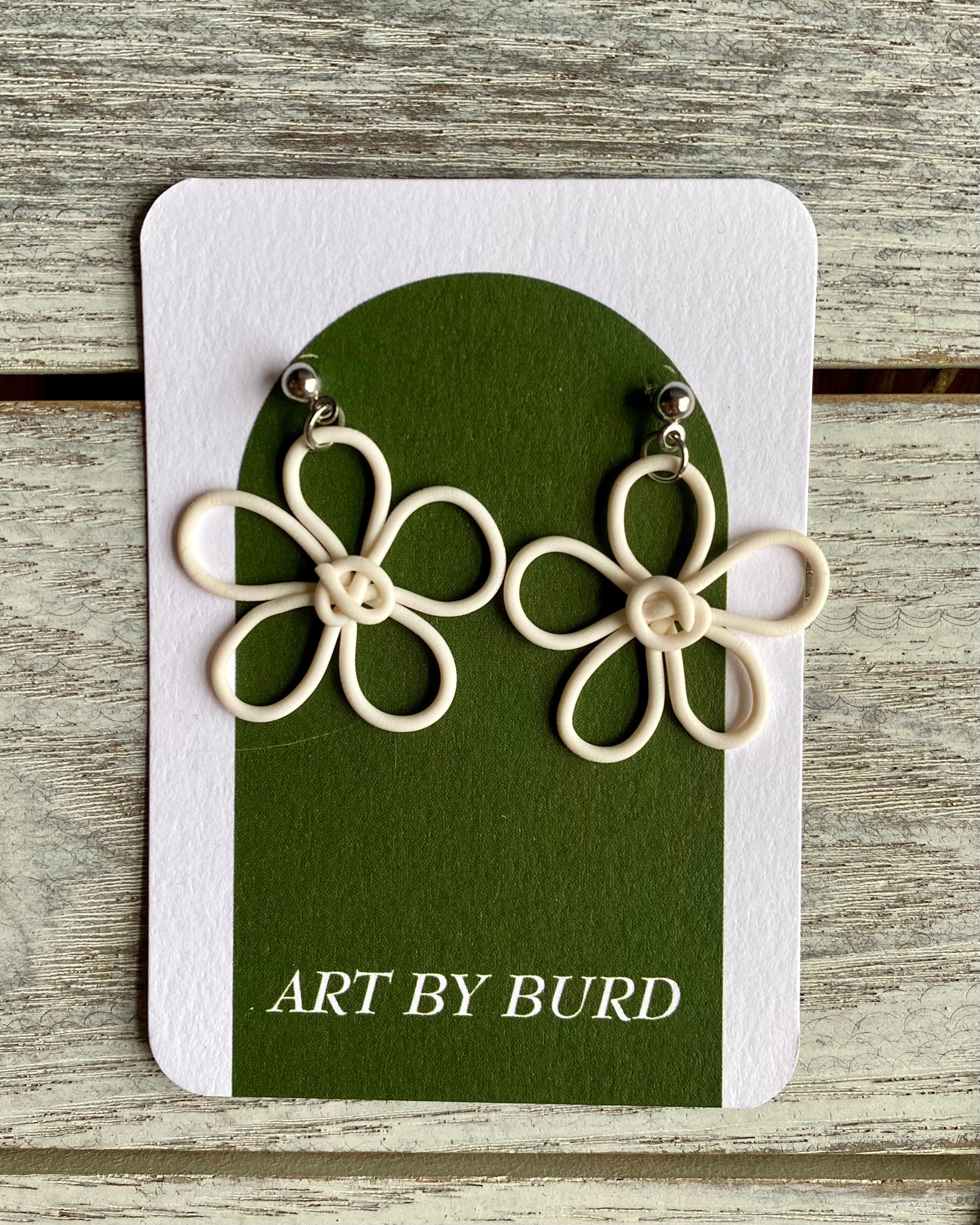 Whimsical and full of color, these handmade polymer clay drop earrings feature thin, doodle-like flowers inspired by the dreamy sky blooms in SpongeBob SquarePants. Available in a variety of vibrant hues, they're lightweight, quirky, and perfect for adding a splash of fun to your day.
