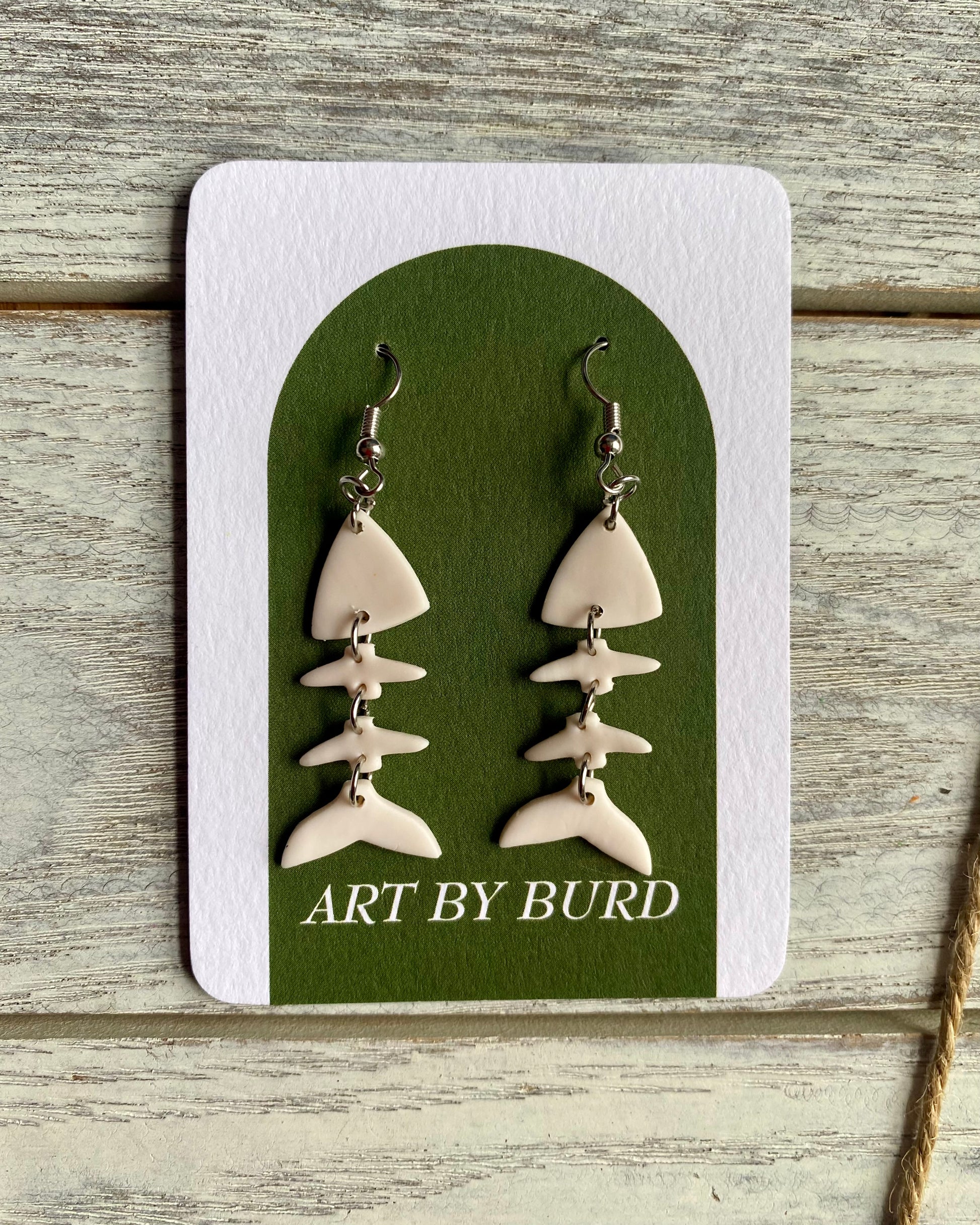 Elevate your style with these unique handmade clay fish bone earrings! Crafted with attention to detail, these lightweight dangle earrings are perfect for those who love distinctive and artistic accessories. Featuring an intricate fish bone design, they add a touch of whimsy and charm to any outfit!