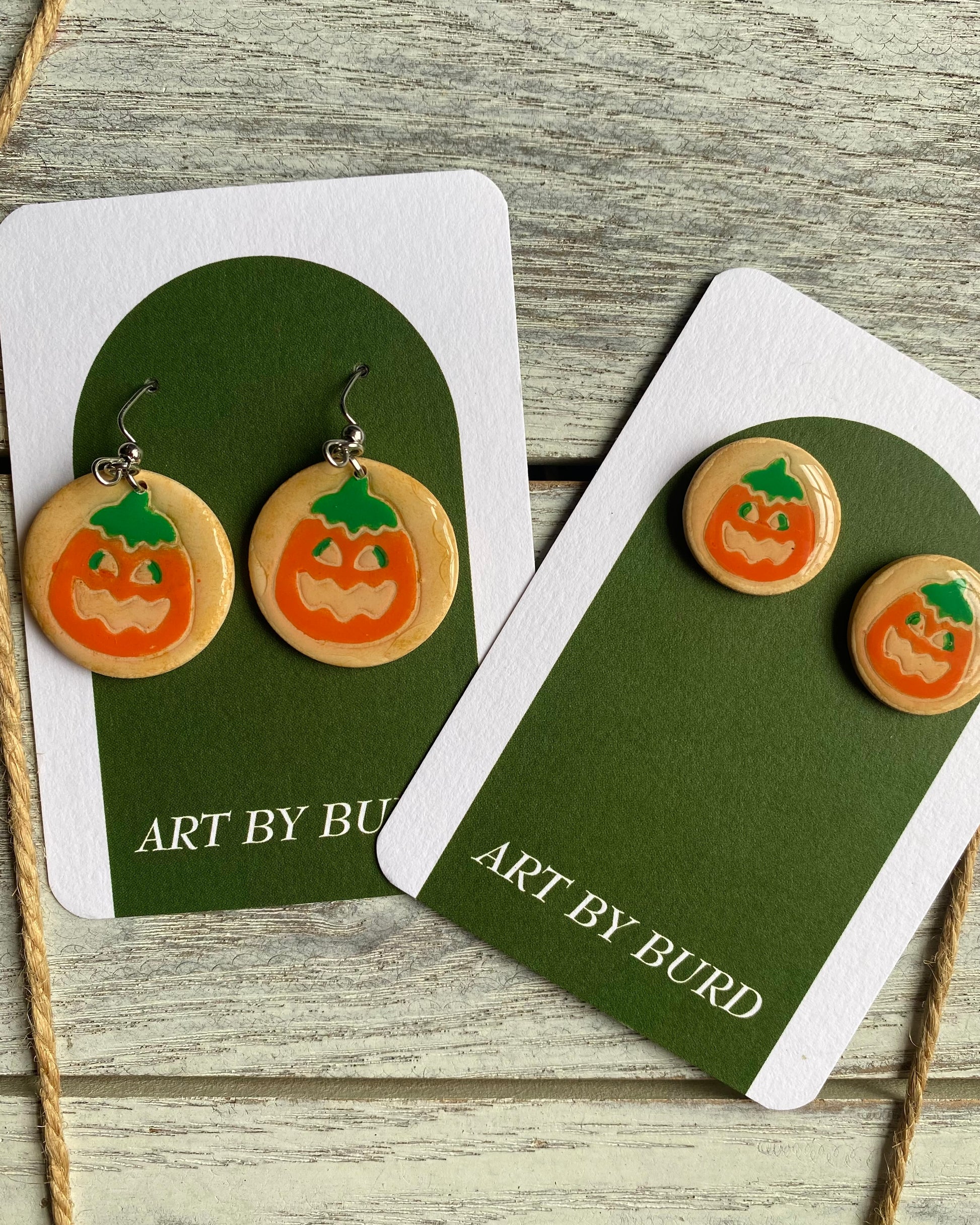 Earrings handmade with polymer clay, acrylic paint, UV resin, and nickel-free hardware.
