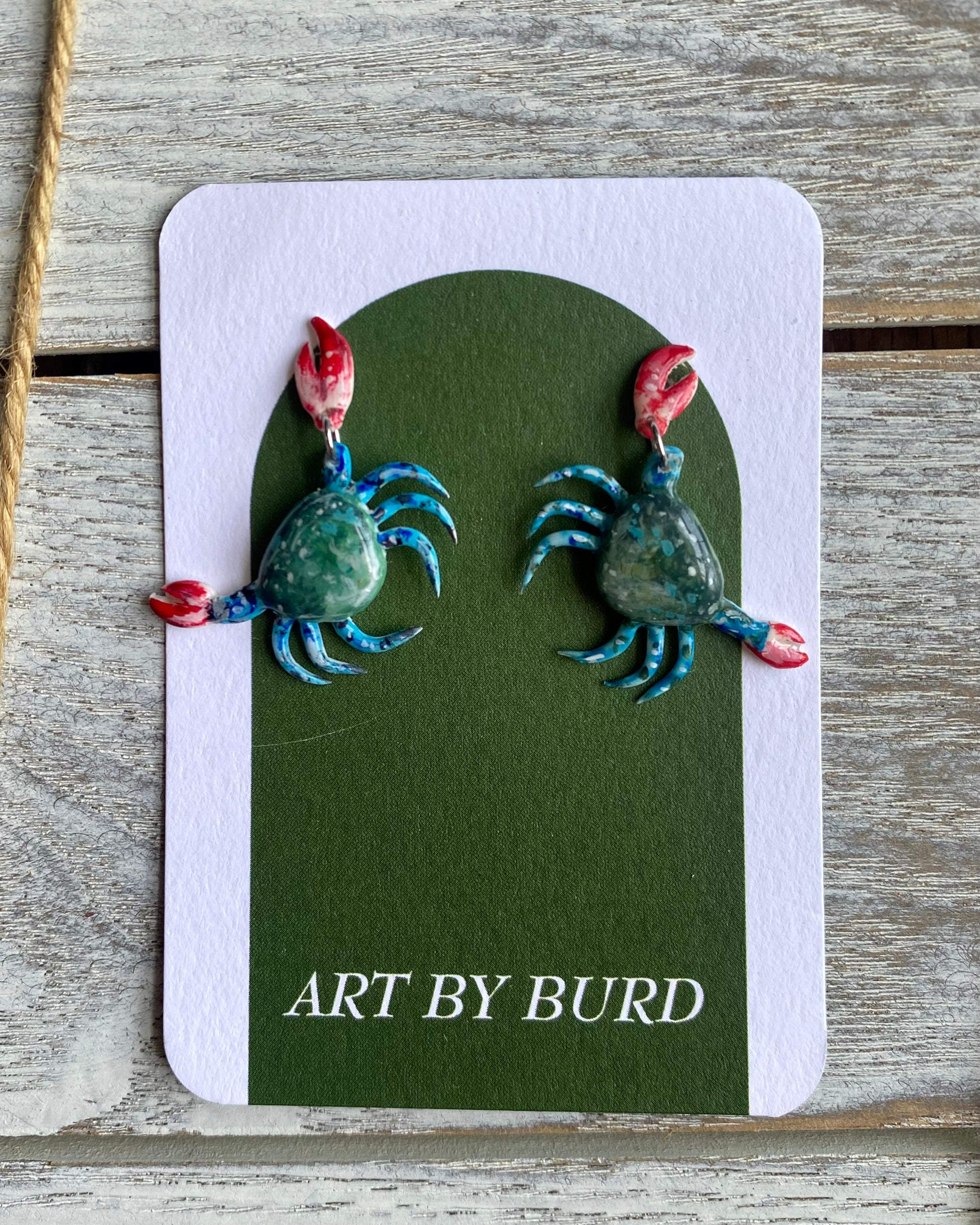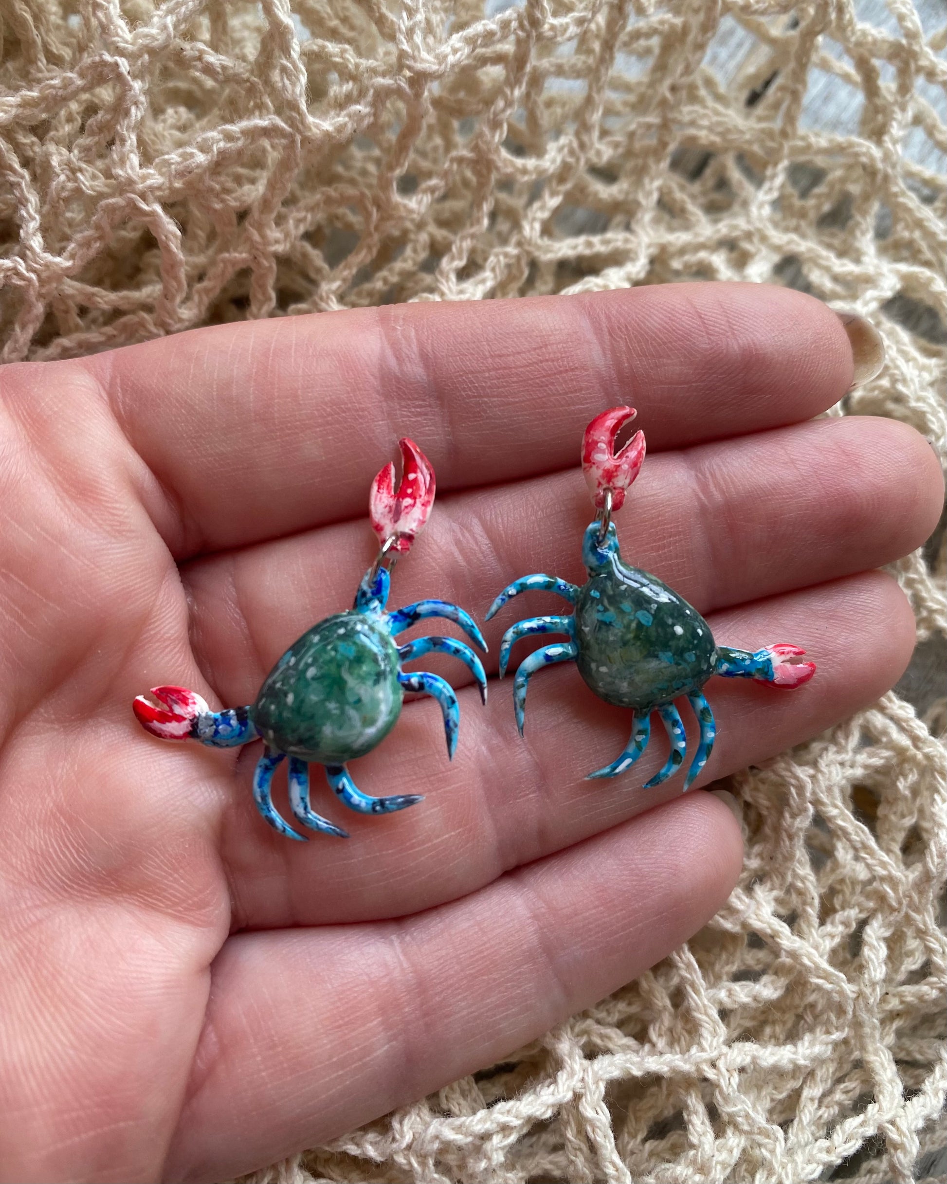 Show off your Maryland Pride with these unique Maryland blue crab drop earrings! Each pair is sculpted and handpainted to look like your favorite east coast crustacean, adding the perfect fun pop to any summer outfit. No two pairs are alike so you’re sure to have a unique accessory you'll treasure forever!