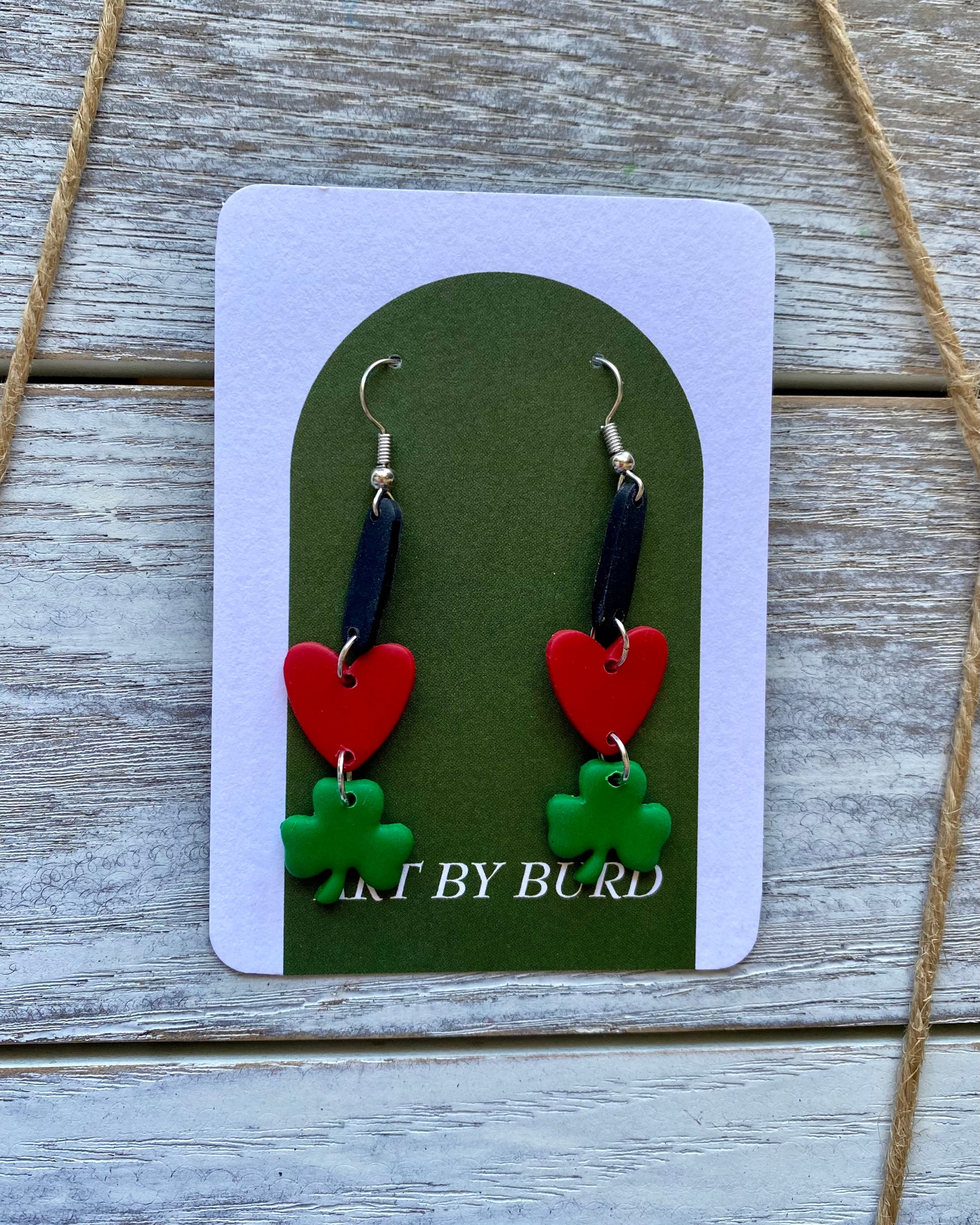 Show off your love for Paddy's Day with these charming I Love Paddy's dangle earrings featuring an "I," heart, and clover design. Perfectly combining a symbol of love and good fortune, these earrings are lightweight, playful, and a delightful addition to any outfit. Ideal for those who want to wear a little bit of magic every day!