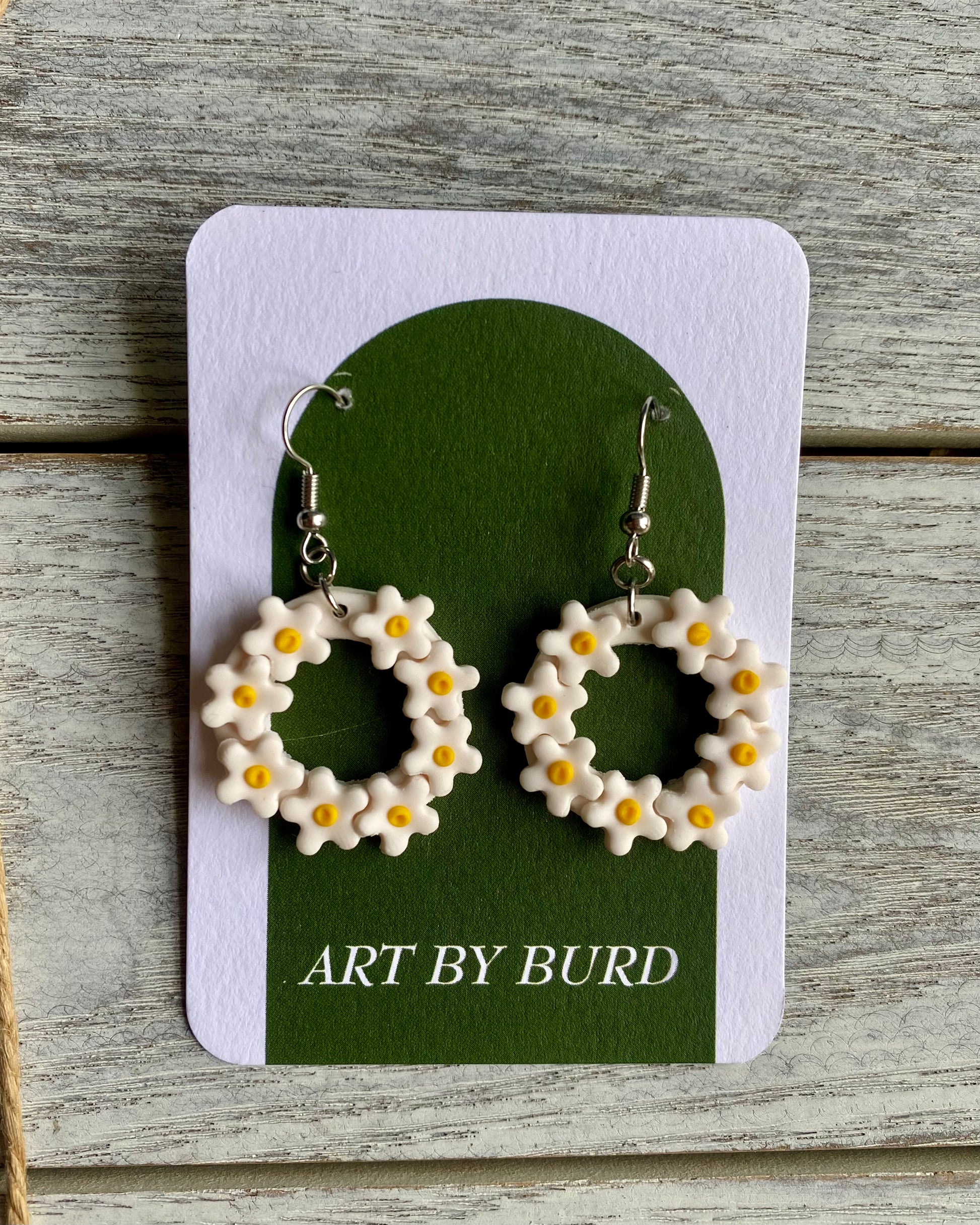 Brighten up your jewelry collection with these handmade polymer clay earrings! Designed with an open circle hoop shape and detailed with charming daisy flower accents, these lightweight statement earrings are perfect for adding a touch of boho style to any outfit. Each pair is carefully handcrafted, making them a unique gift idea for her or a beautiful accessory for spring and summer outfits. Whether you're heading to a festival, brunch, or beach day, these daisy earrings will add playful, floral vibes to your look.