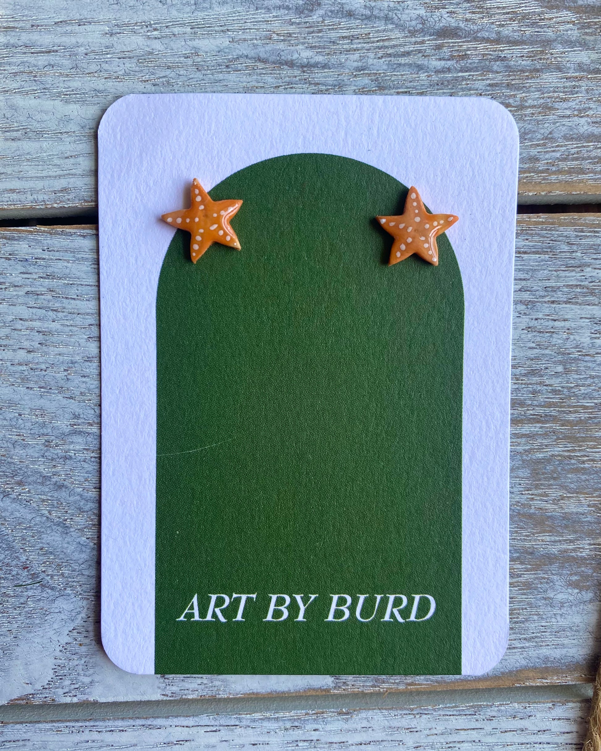 Bring a touch of the ocean to your day with these handmade and handpainted polymer clay starfish stud earrings! Delicately detailed and lightweight, each pair is crafted to capture the charm of a real starfish—perfect for beach lovers, summer outfits, or adding a subtle coastal flair to your everyday style.