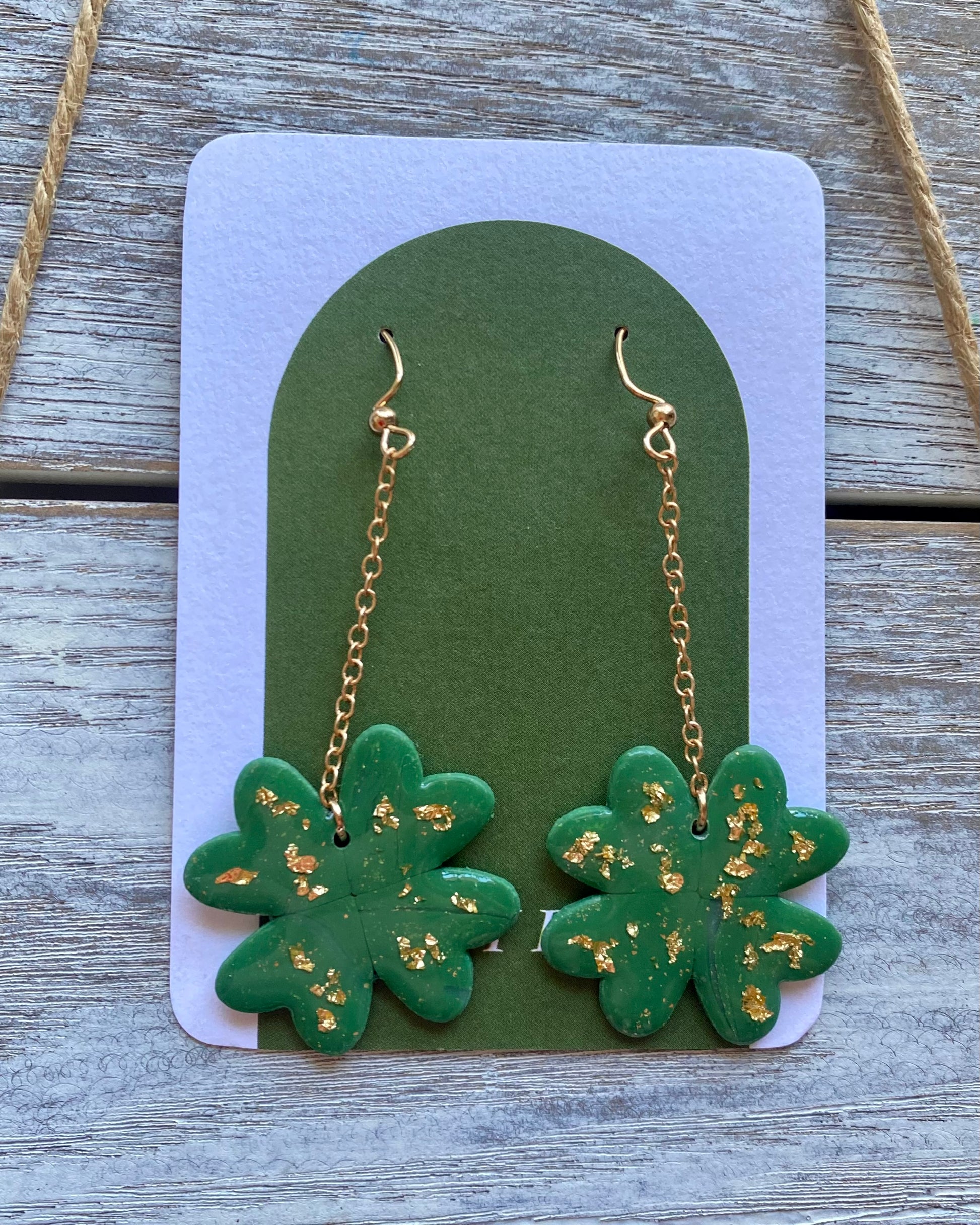 Handmade with polymer clay, gold foil, UV resin, and nickel-free hardware.
